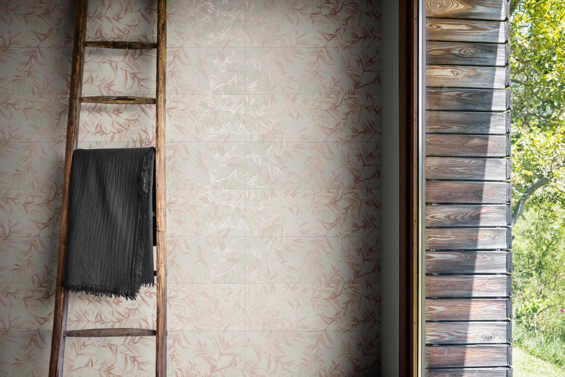 Alongside the solid colour plain tiles there are also two nature-inspired decors: Melody, floral with a watercolour effect and Foliage, evoking vegetation and enhanced by iridescent touches.