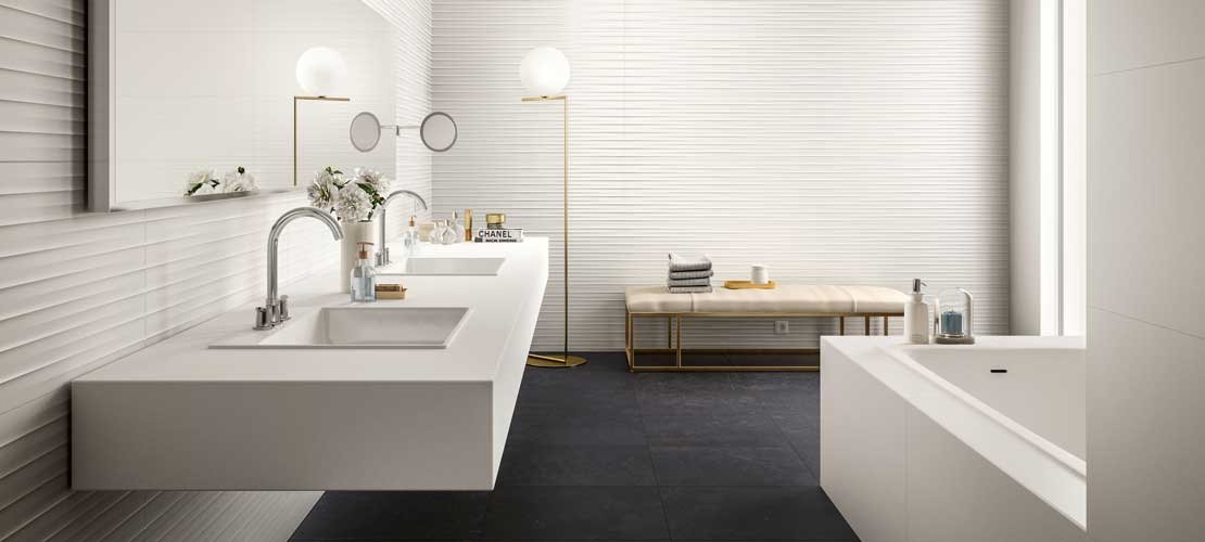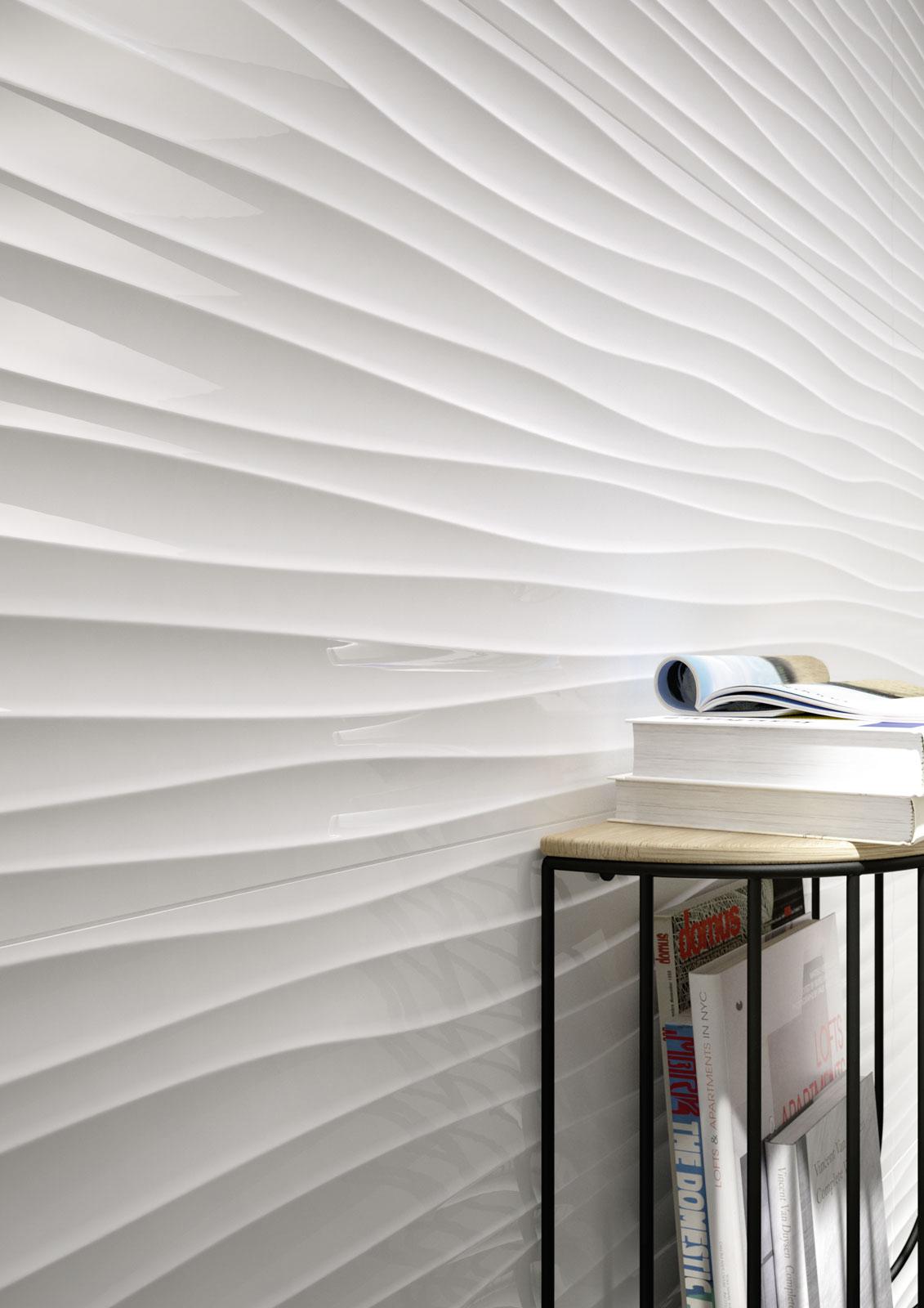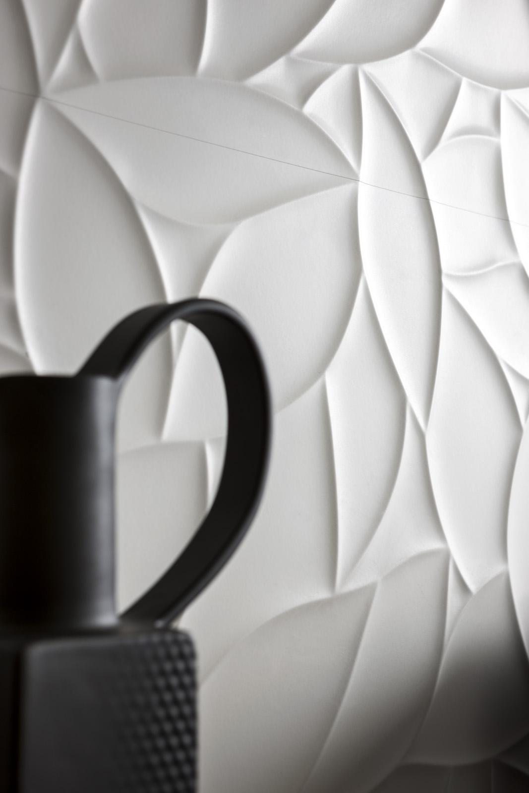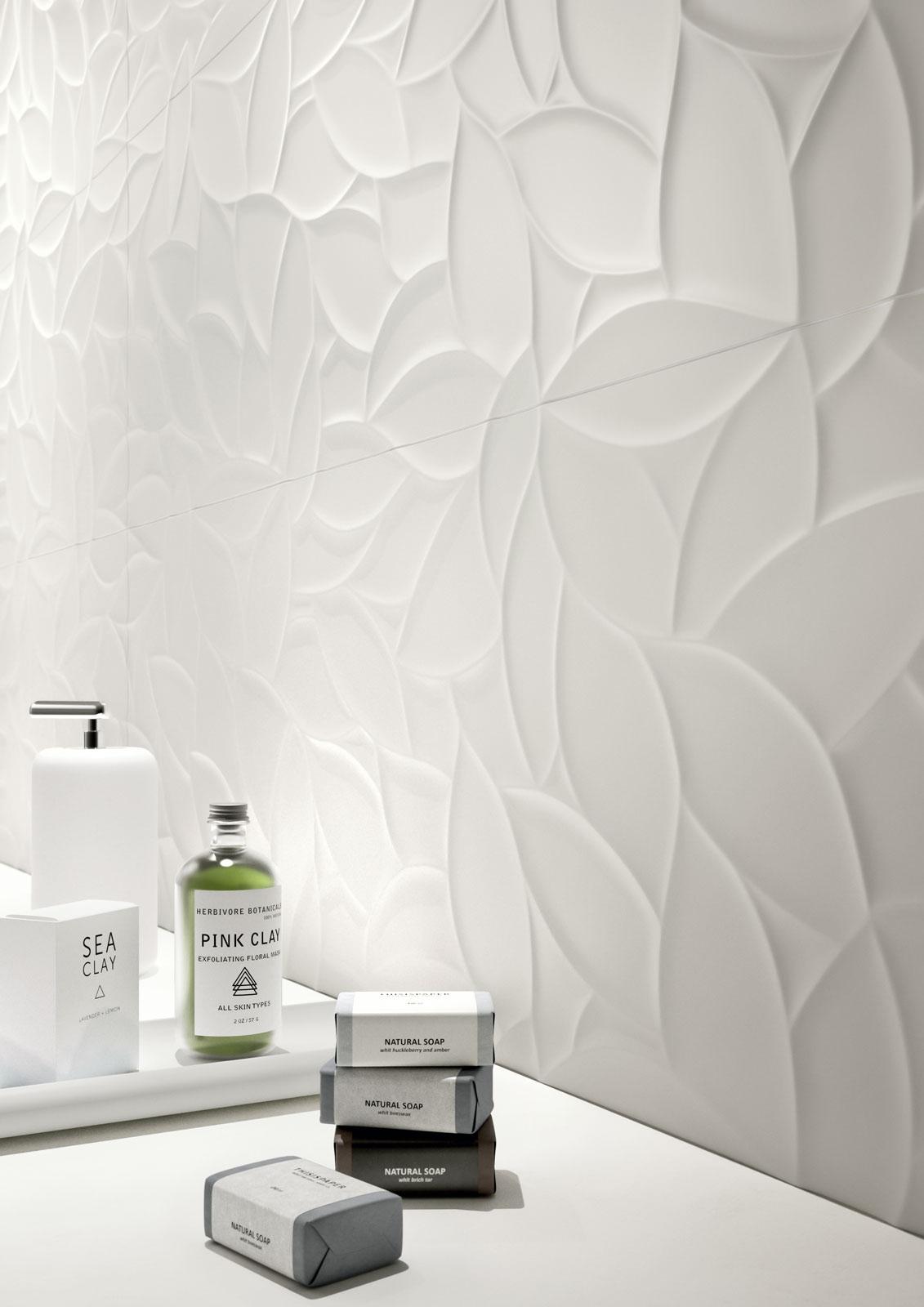 Essenziale by Marazzi is the range of white tiles developed with original 3d effects and in different surfaces, glossy and satiny, for a new concept of total white.