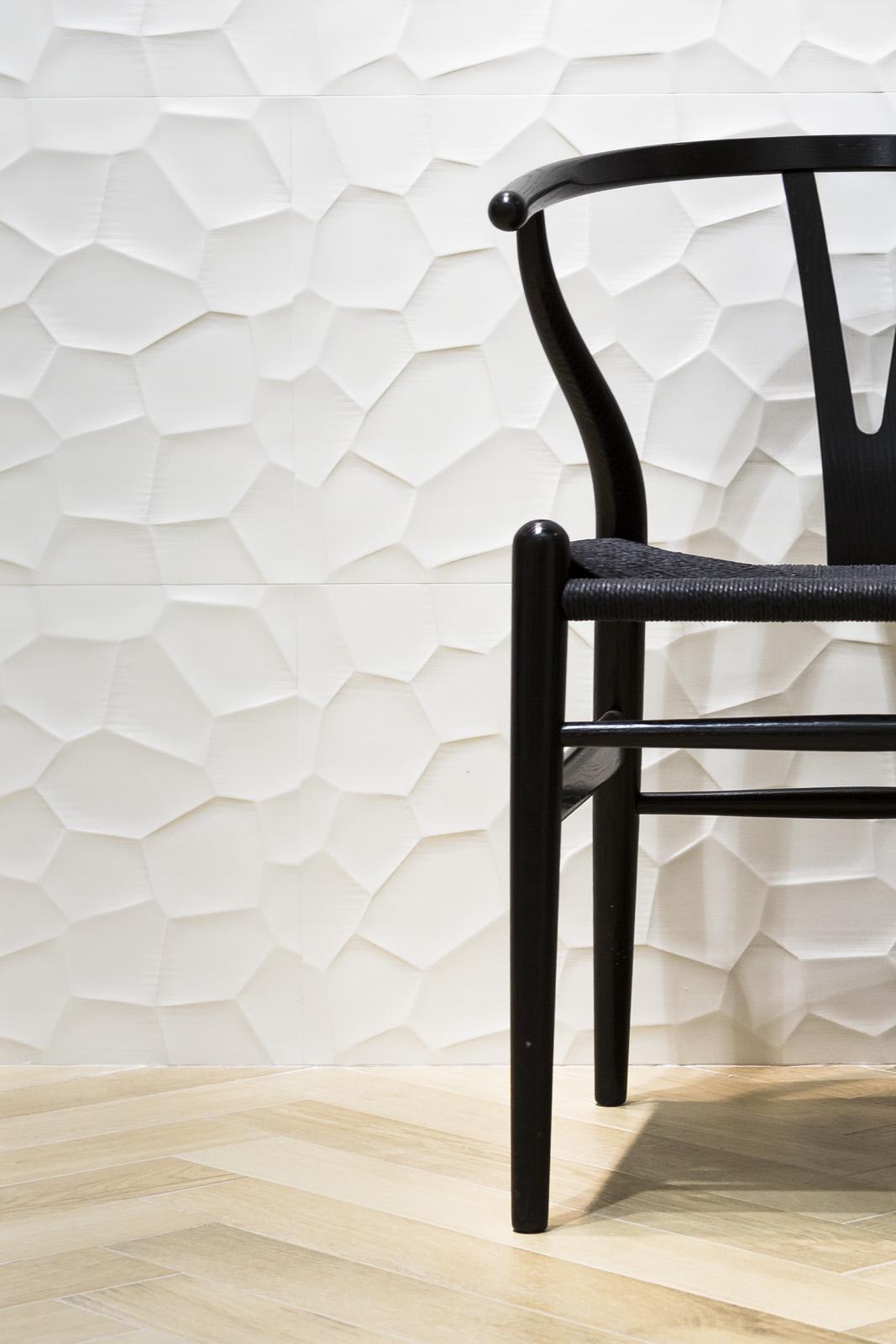 Essenziale success and modernity in the interior décor field led Marazzi to expand the collection with two new 3d finishes, showcased at Cersaie 2016. In addition to Wave and Flora , Essenziale will be available in the new Drape and Deco structures: the first with a new draping effect on the surface, while the second recreates an original wrinkled effect with an irregular 3d texture. Drape and Deco will be produced both in satiny white and in a brand new metal finish, to decorate walls with new surprising combinations and light effects.