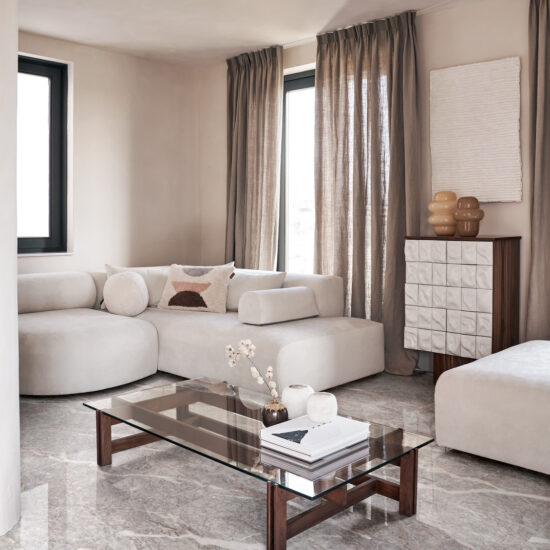 Given these considerations, the materials used play a fundamental role in furnishing a modern living room: surfaces have to be not only aesthetically appealing but also hard-wearing and easy to maintain.