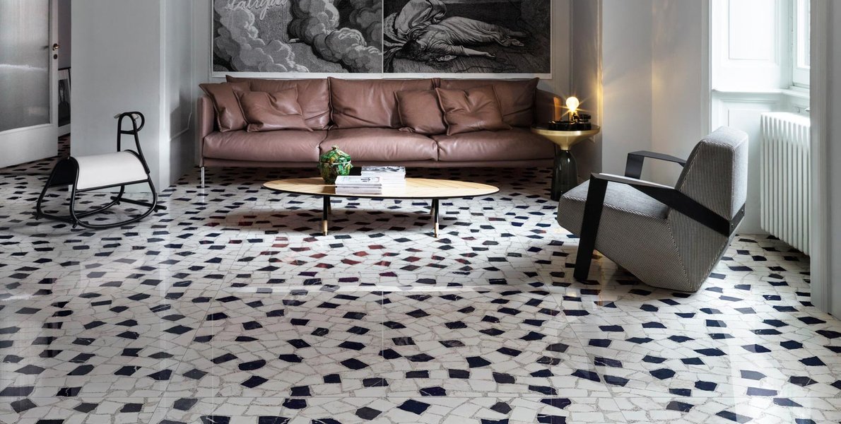 Grande Marble Look Ghiara is the new stoneware collection inspired by Venetian Terrazzo