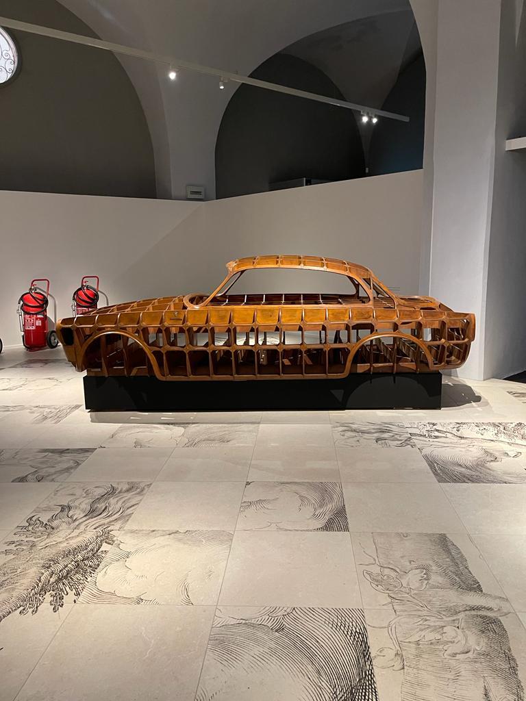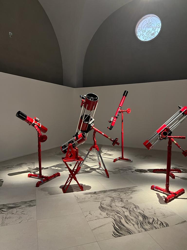 A leading figure on the British and international arts scene, Simon Starling (1967) has relocated the cycle of paintings of the Fall of Phaeton by Tintoretto (1518-1594), inspired by Ovid’s Metamorphoses, to the ceiling, forcing visitors to view them from an unusual angle at which the child of the Sun seems to be plummeting down from the sky. The fire in the paintings becomes an ambivalent symbol of the ability to transform and the risk of destruction. “The myth of Phaeton,” the artist explains [Olga Gambari in La Repubblica newspaper, Modena news, 15 October 2022], “has a profound, almost prophetic contemporary meaning: he thinks he can do anything, even drive the chariot of his father the sun god Apollo to show off his divine birth to others.”