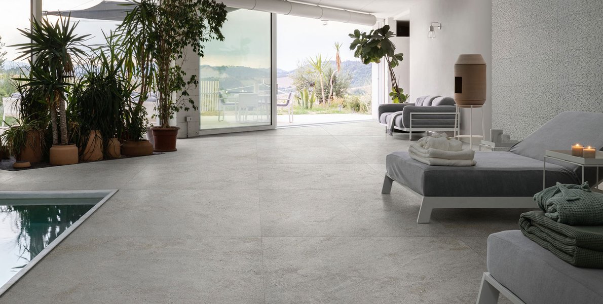 A number of different sizes have been designed to highlight the collection’s tactile consistency: 60×60 cm, 60×120 cm and the new 100×100 cm for floors and 33×100 cm for walls. Naturalia is also available for outdoor use, in the 100×100 and 60×120 cm sizes. This emphasises the continuity of style and material between indoor and outdoor areas, an increasingly popular trend in contemporary architecture, which blurs the boundary between the different spaces. And, for more versatile application both outdoors and in damp settings, Naturalia features the StepWise Premium Technology, which gives tiles excellent slip resistance and mechanical strength.