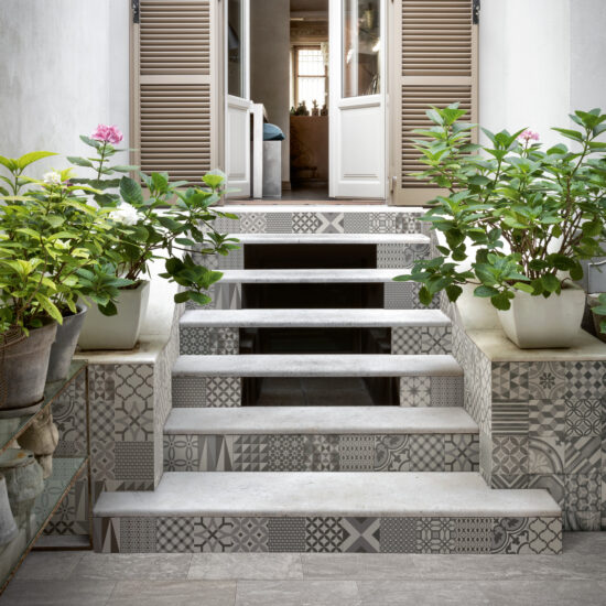 So let’s take a look at the benefits this material offers for the construction of steps and stairs: whether it’s for the indoor staircase connecting the different floors of a home or outdoor steps that provide an elegant context to welcome guests, porcelain stoneware provides practical and aesthetic solutions to suit all needs.