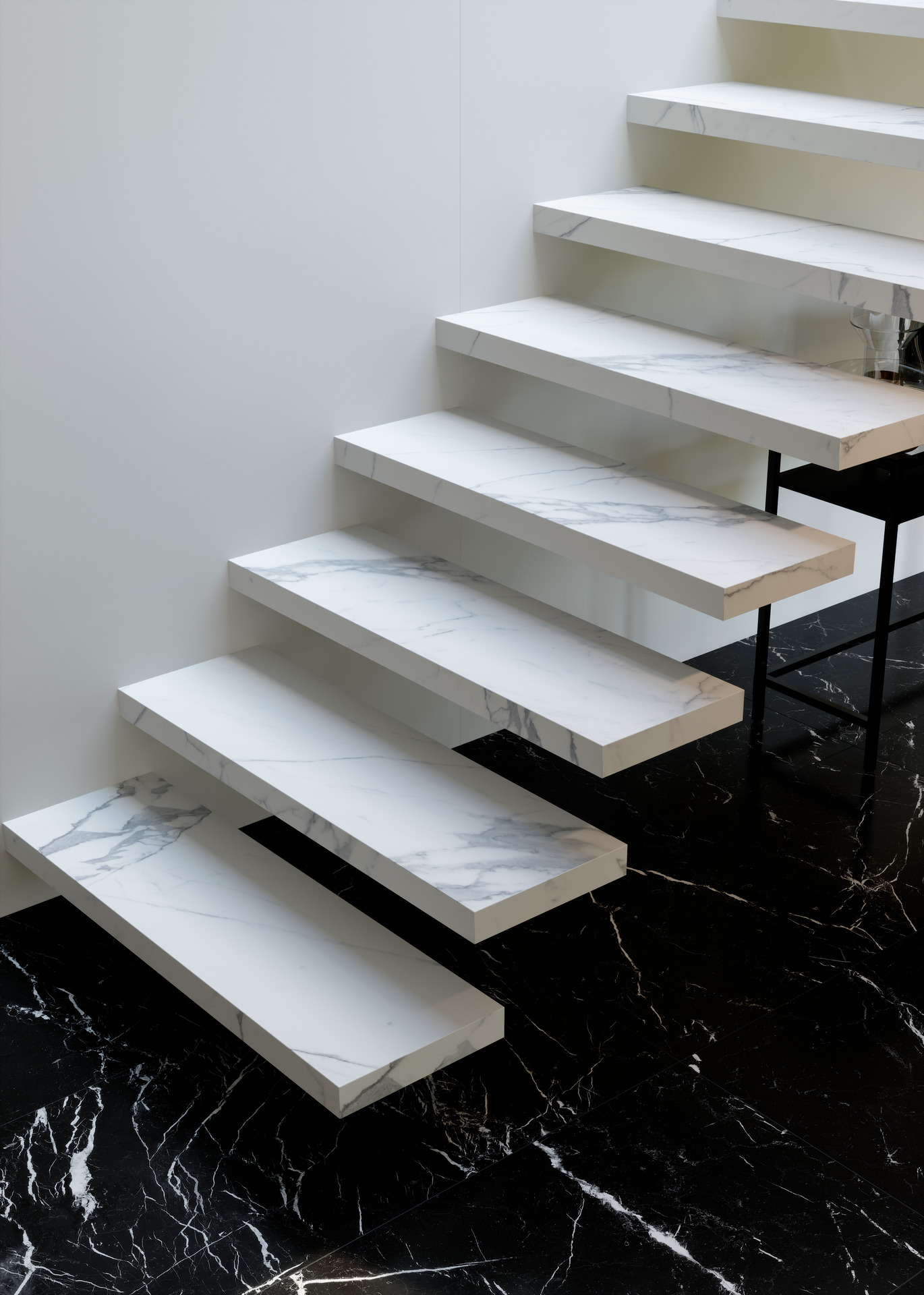 One of porcelain stoneware staircases’ most popular characteristics is their ability to transform their surroundings, enhancing every detail with a refined, versatile aesthetic.