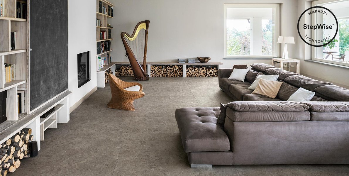The new Marazzi stonewares, made using the StepWise™ technology, also undergo a mechanical treatment across the entire surface which maintains their soft “feel”, combined with a high dynamic coefficient of friction (DCOF, ANSI American National Standard). This coefficient measures tiles’ performances when their surfaces are wet: 0.42 is the standard value for surfaces installed indoors.