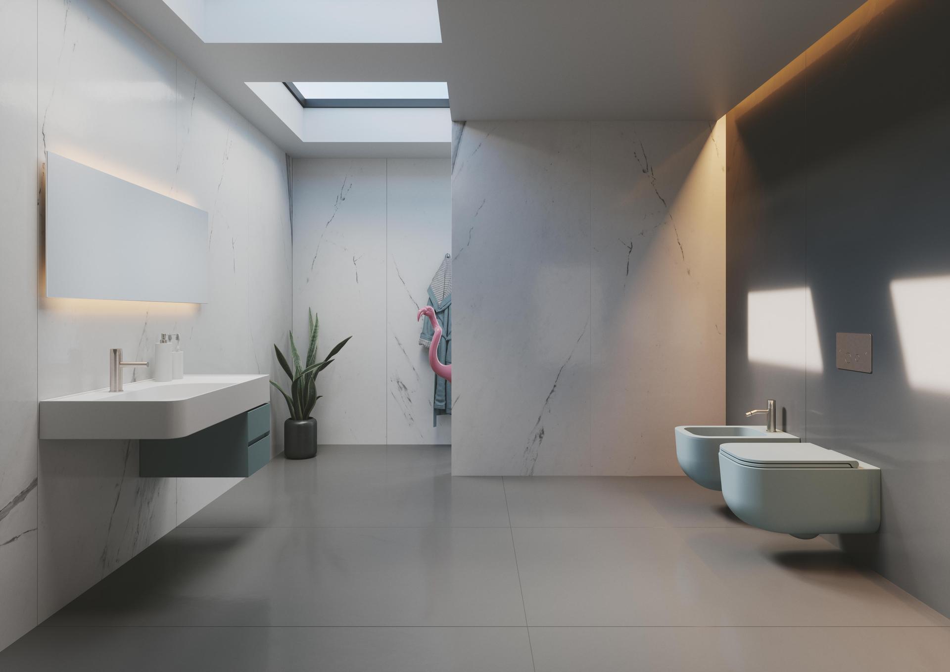 Technology will become part of the bathroom of the future, with an ever-increasing awareness of sustainability in terms of energy and water consumption. However, the user target will decide the bathroom’s character: the more high-tech younger generation may prefer a large shower with speakers that play music from their smartphone, or mirrors capable of updating us on the latest news. In the future, we will increasingly see contiguous, more fluid interiors. Therefore, wall coverings will also seek to achieve continuous aesthetic looks, with high technical performances and mixtures of materials. And with porcelain stoneware, colours can be both very glossy and matte, to create customised shade effects and a unique personality.”