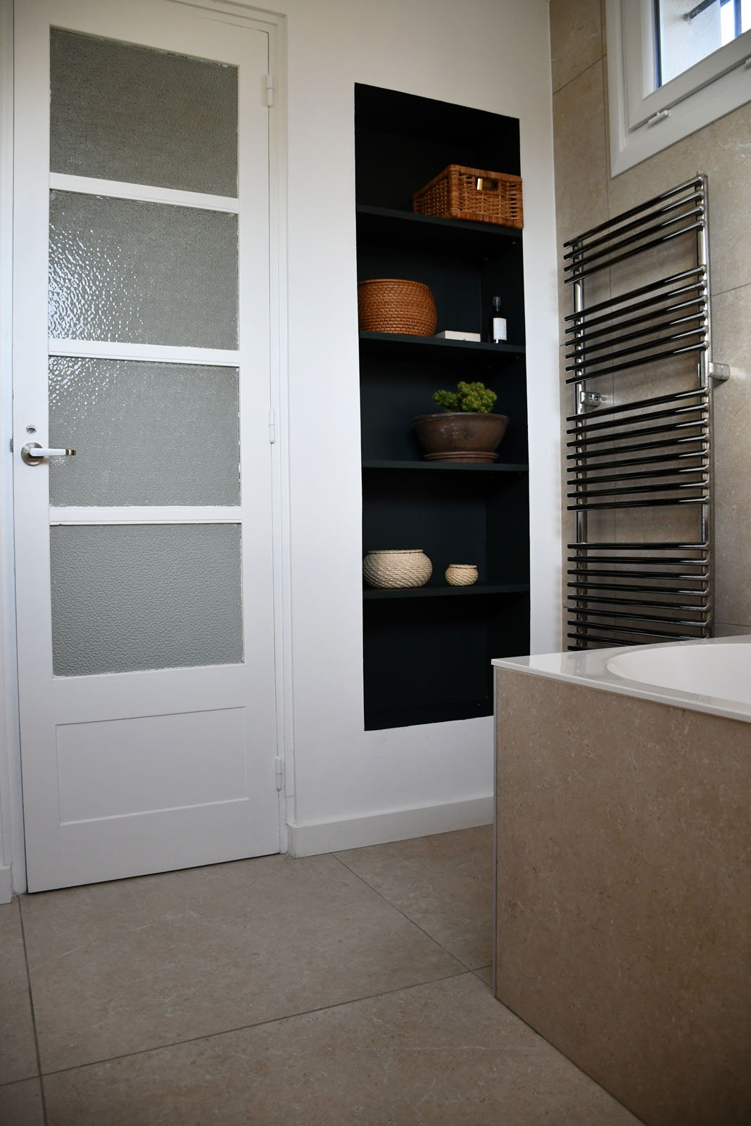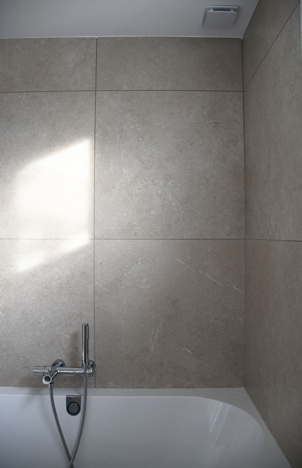 In the bathroom area, the floors and walls were covered with Mystone Limestone in Sand Velvet finish, with a surface that feels warm to the touch, in the 75x75 cm size. Stoneware was chosen because it is tough, hardwearing and extremely easy to maintain and clean, all plus factors for everyday life.