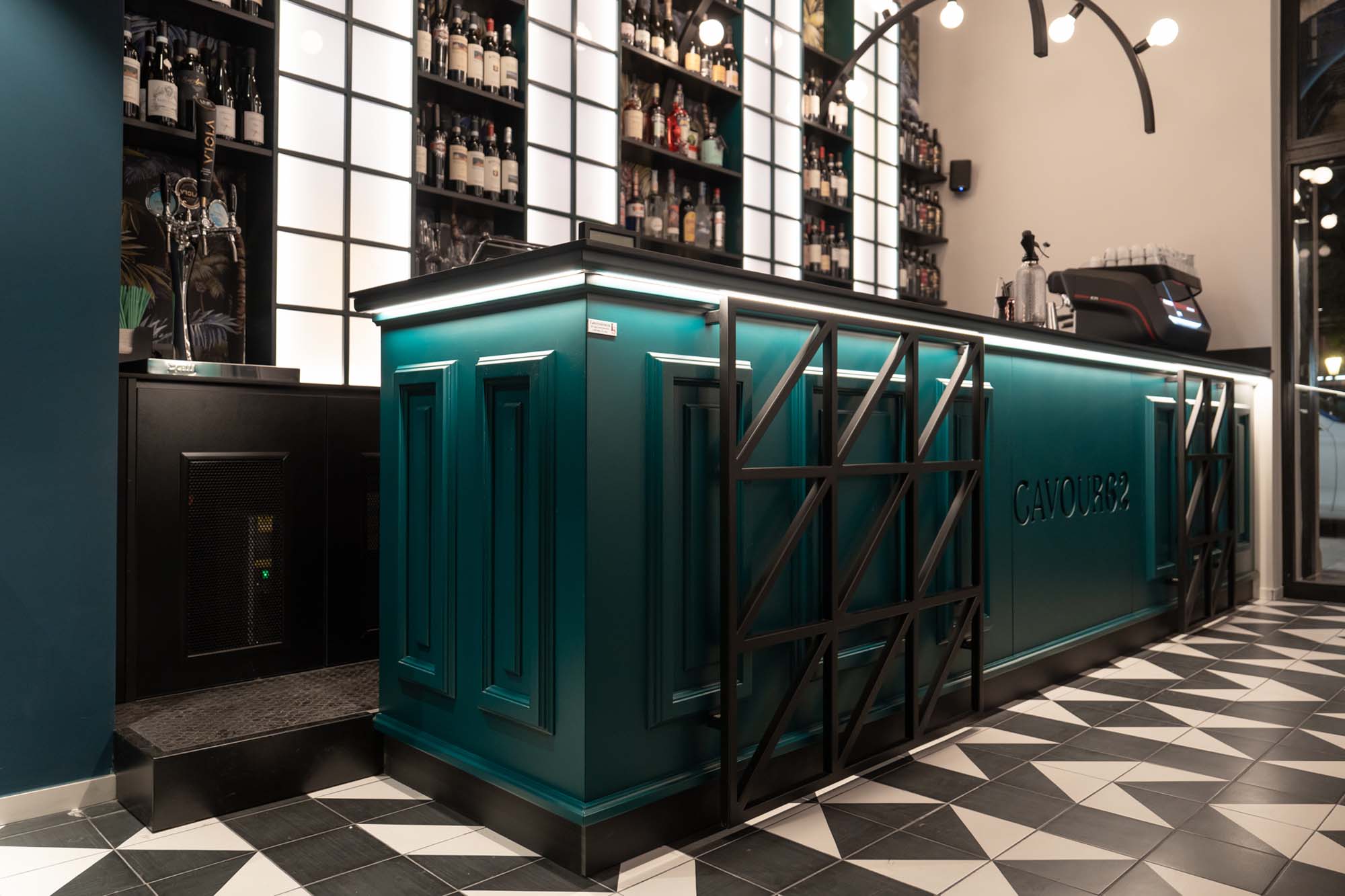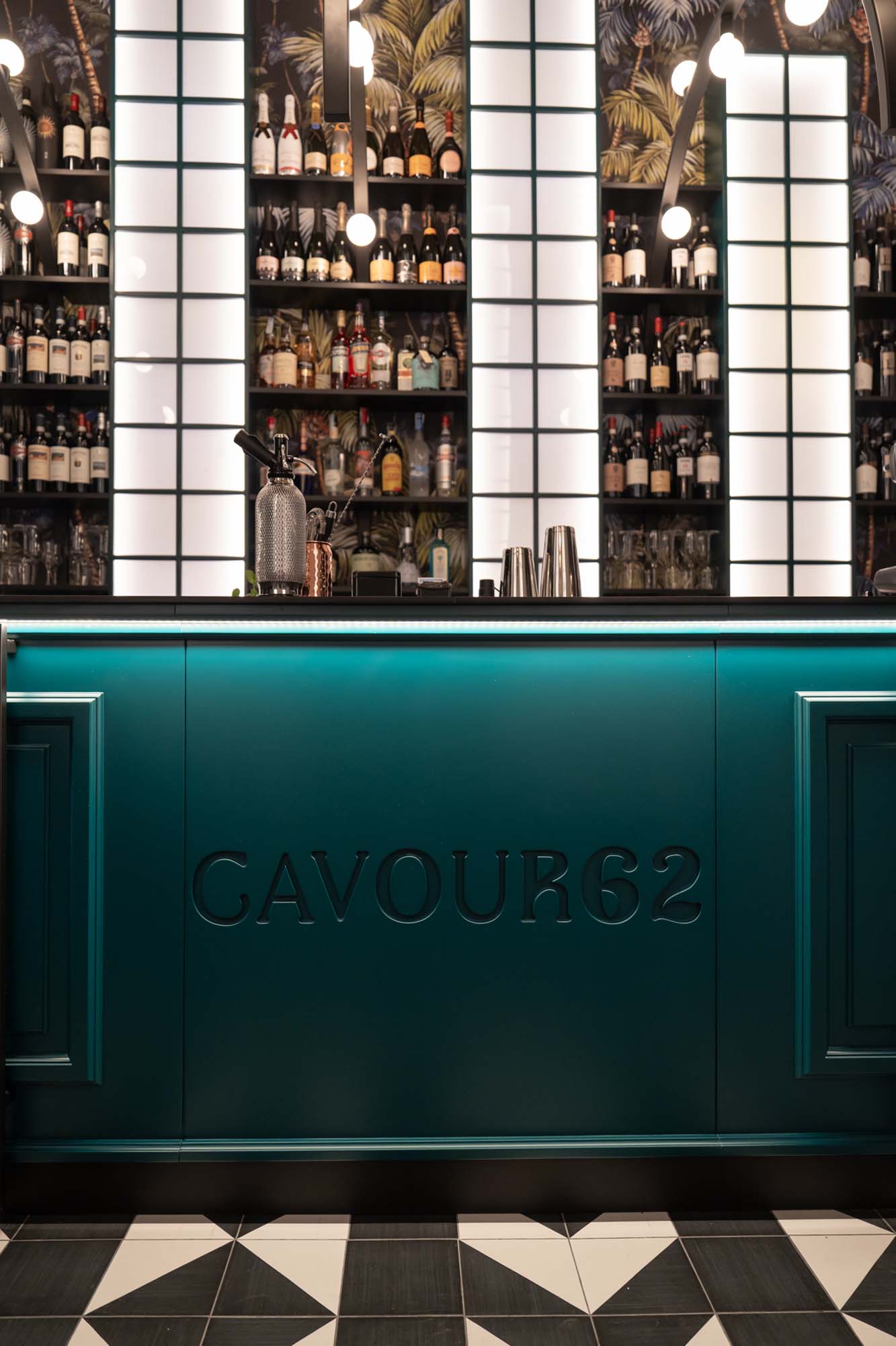 Overtones of New York and tropical details are the key to the new Cavour 62, a cocktail bar with an industrial air right in the centre of Bari. Famous as the city’s main shopping street, corso Cavour is lined with Bari’s most fashionable locales and stores. This venue, created by architect Stefano Carlone and designer Vincenzo Berlingerio of K1 artStudio, is part of a historic building, with a ceiling of wide cross-vaults and tall windows that emphasise the interior’s height. Small but with a huge personality, the Cavour 62 is divided into two areas, the first a bar, with a large, brightly coloured counter and bottles on display, and the second, more secluded, providing seating and a more intimate mood for the clientele.