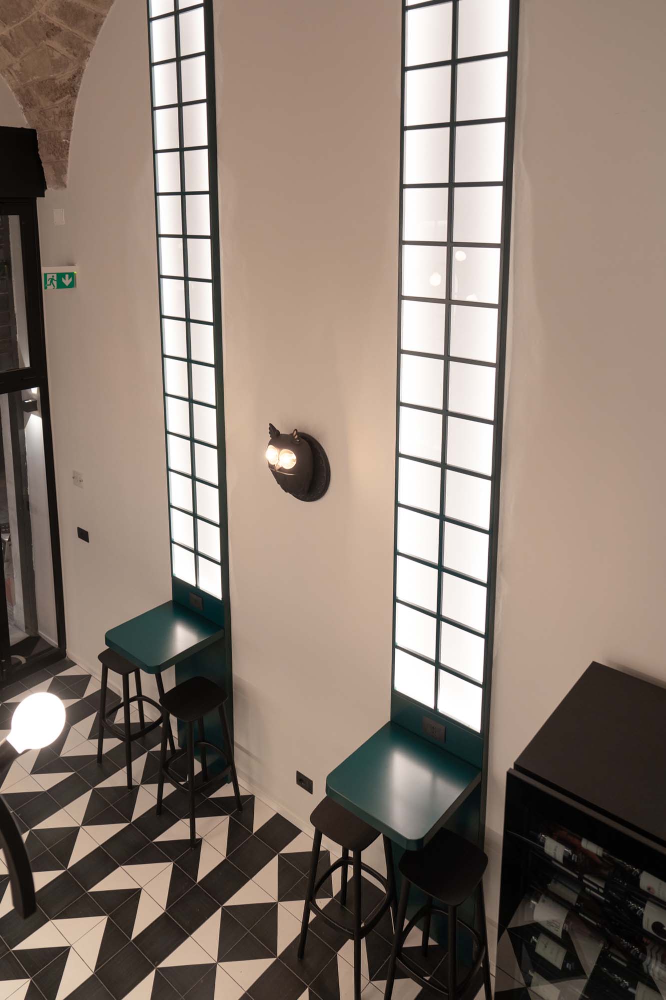 Hotel and catering, hospitality and leisureA metropolitan mood, old Apulian stone arches, optical-effect floors and tropical textures make up the successful mix in a small, elegant cocktail bar tucked away right in the centre of Bari.