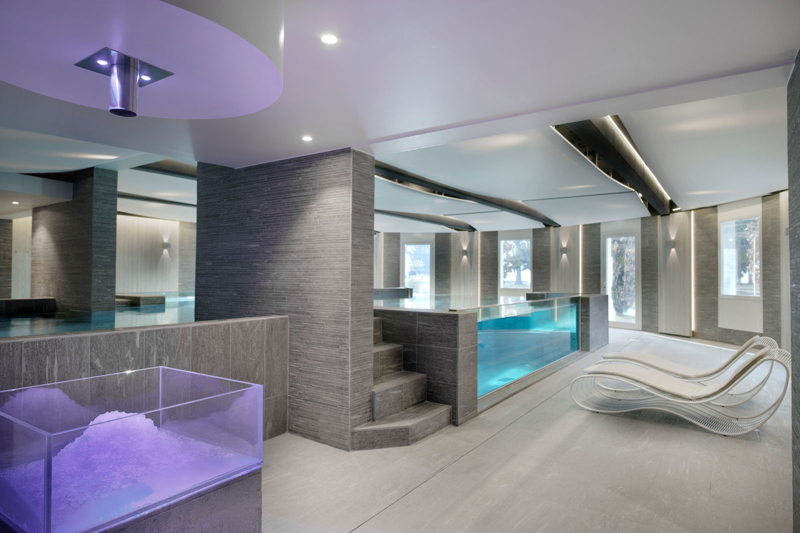 Cristal Spa is the wellness centre at the Imperial Palace Hotel, a historic Belle Époque-style hotel in the heart of the French Alps. Architects Pierre Brunier, Michel Force and Marie Laure Marrel of the Espace & Resonance firm, experts in interior feng shui, designed the centre. The spa’s interior embraces the Chinese art of feng shui, embodied by the use of the Mystone Pietra di Vals stone-effect stoneware collection, whose natural, materic texture is perfect for the project’s concept.
