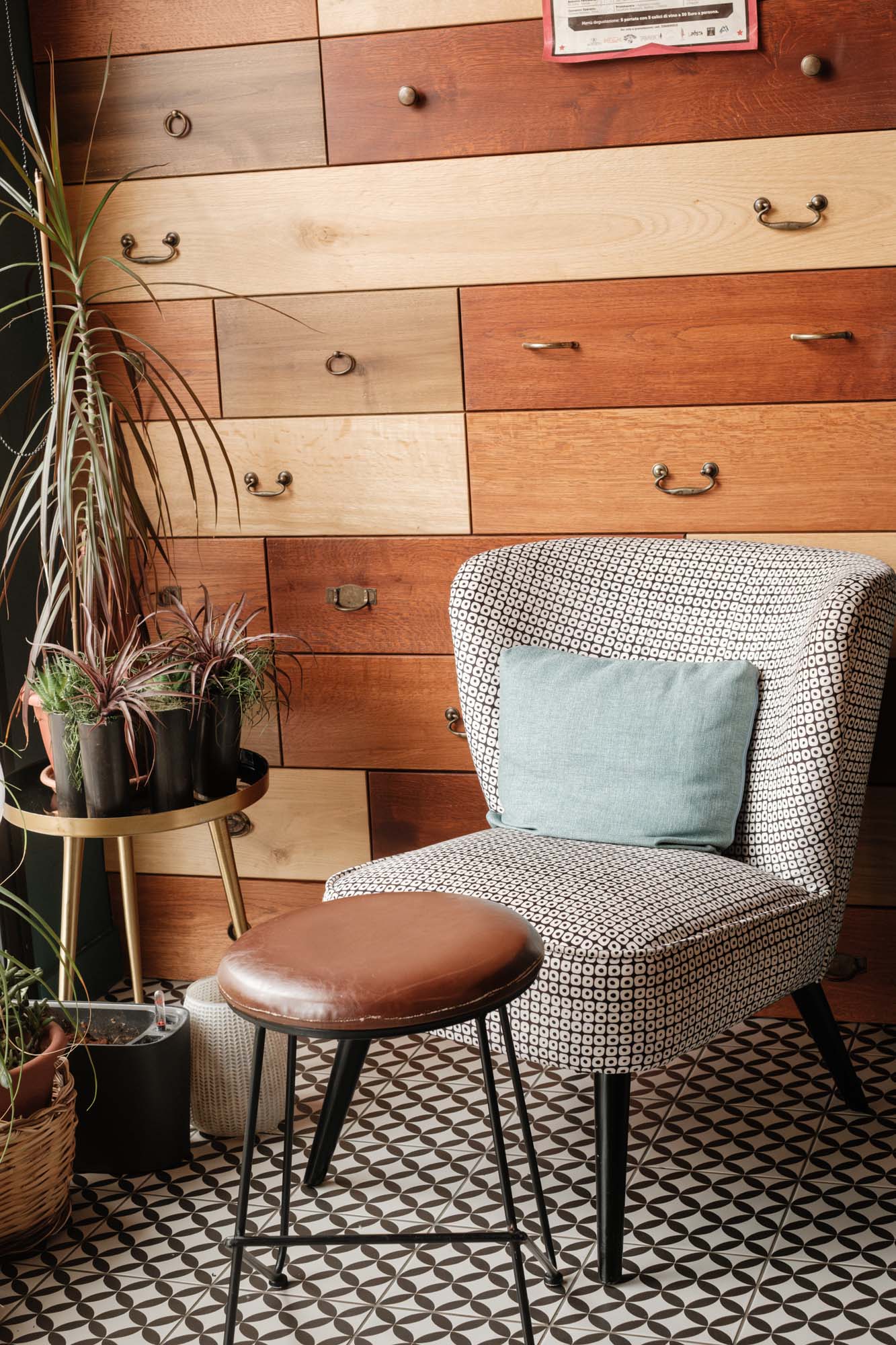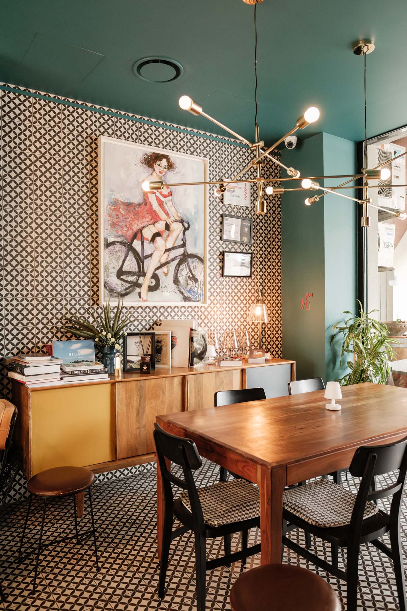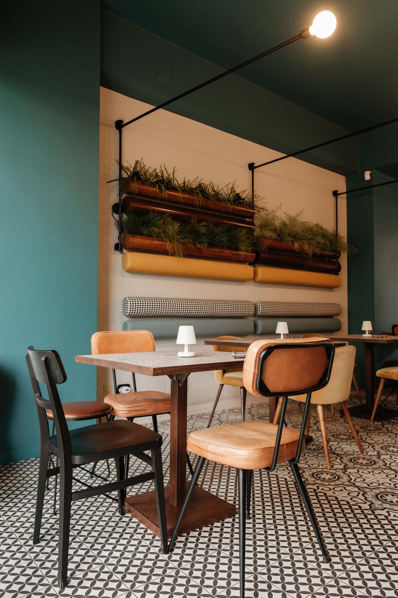 The retro-style D_Segni series blends perfectly into the mood of the interior and the different decorations of the two Tappeto decors provide an edging and subdivide the restaurant’s length. Each portion creates a kind of warm, cosy alcove, where diners can observe and appreciate the flaws that make the vintage furnishings so special and original. “The ceramic tiles,” Giulia Brutto continues, “enabled me to reference antique interior design materials such as cement tiles and houndstooth check upholstery, but in a fresh, contemporary way. And since I also love designing furniture, the Ceppo di Gré stone effect on the tables was both light and exquisite. We wanted an interior design that would stand the test of time. And ceramics, especially in projects of this kind, have many benefits: a wide choice of decors, sizes and colours; greater durability and strength than other materials; and the excellent value for money, an important factor in a project’s economic feasibility.”