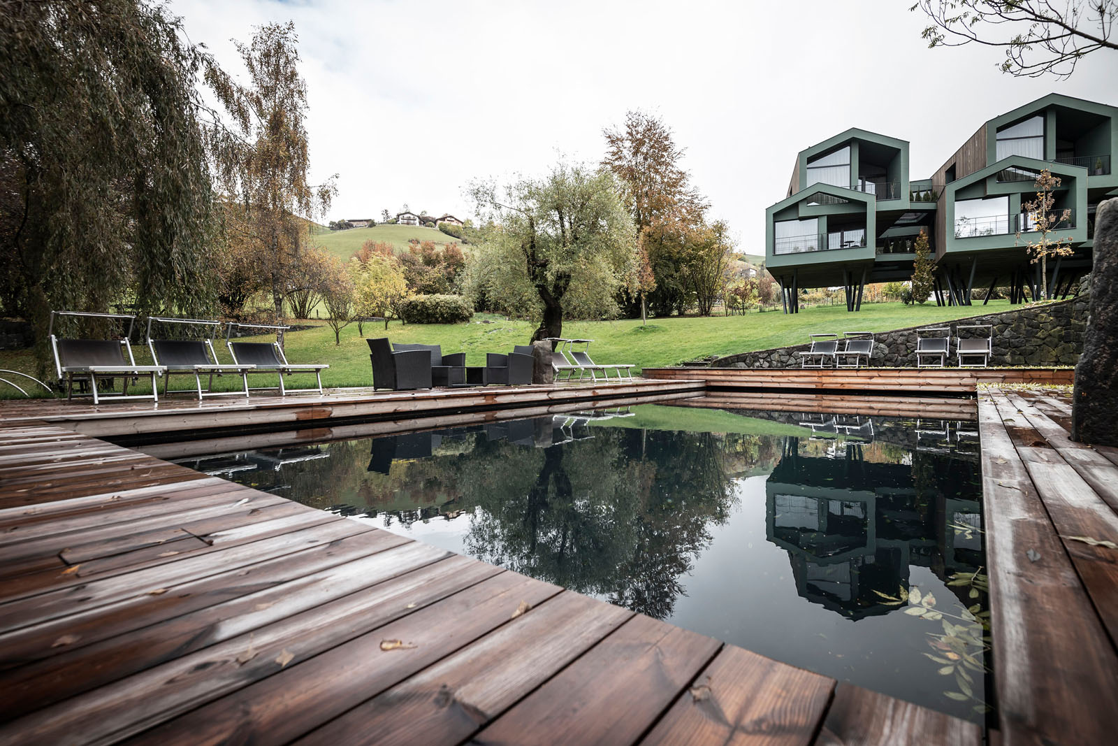 Hotel and catering, hospitality and leisureThe NOA* firm, which specializes in mountain architecture, designed the extension of Hotel Floris in Seis am Schlern, in the Dolomites. The ten suites, which each have five rooms, are designed as ten small buildings arranged in succession, slightly staggered and suspended from the ground to keep the centuries-old park unspoiled and unobscured.