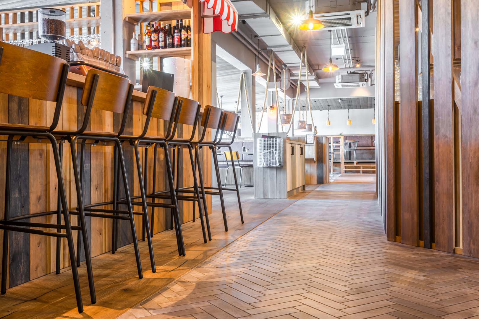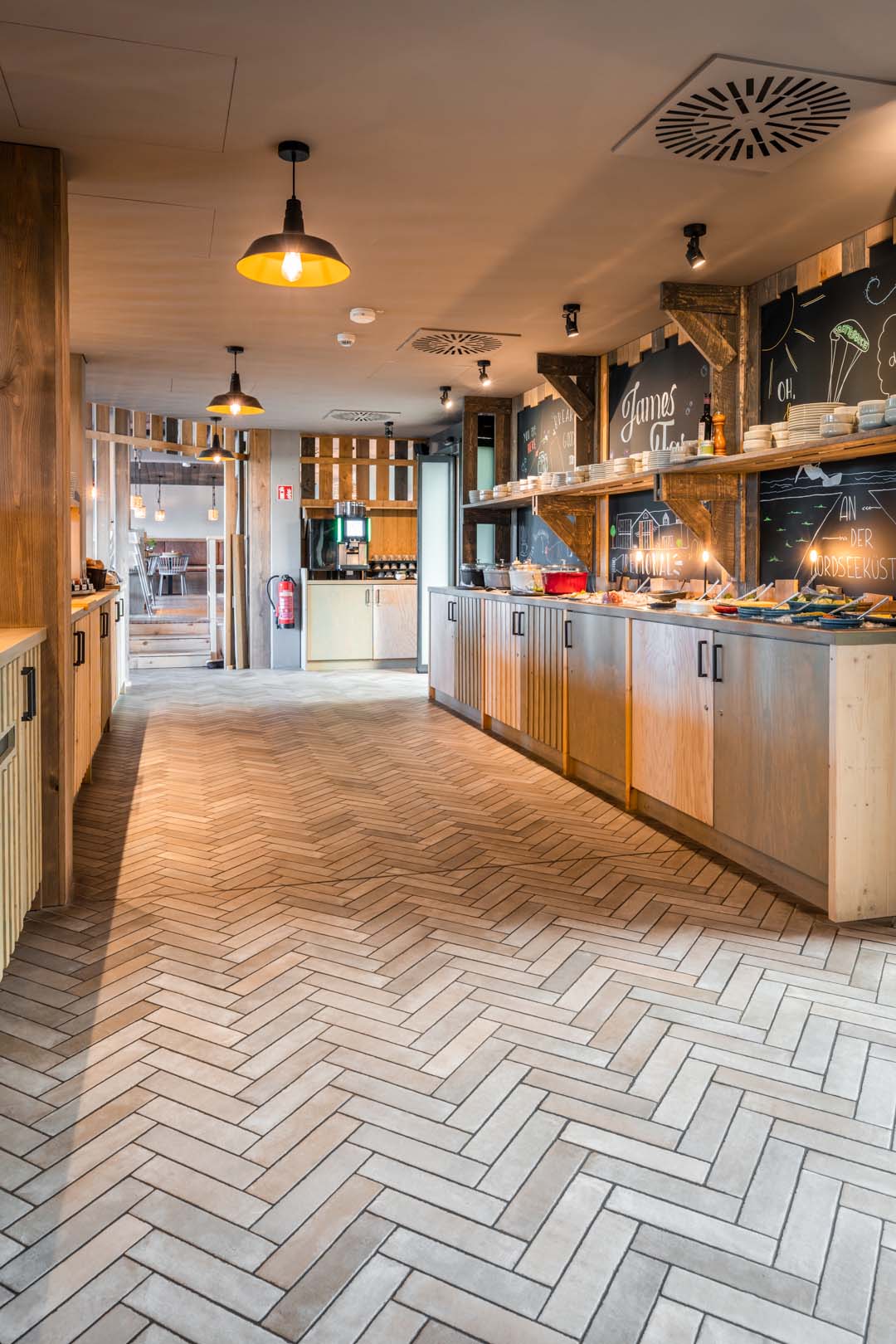 Hotel and catering, hospitality and leisureThe Bretterbude Büsum hotel, the latest addition to the Heimathafen Hotels group, features a unique design with 112 rooms and a prime location on the North Sea coast. The architects of Architekturbüro Ladehoff GmbH make extensive use of ceramics with the Crogiolo Lume and Crogiolo Zellige series, creating industrial environments with the Appeal and Terratech collections.