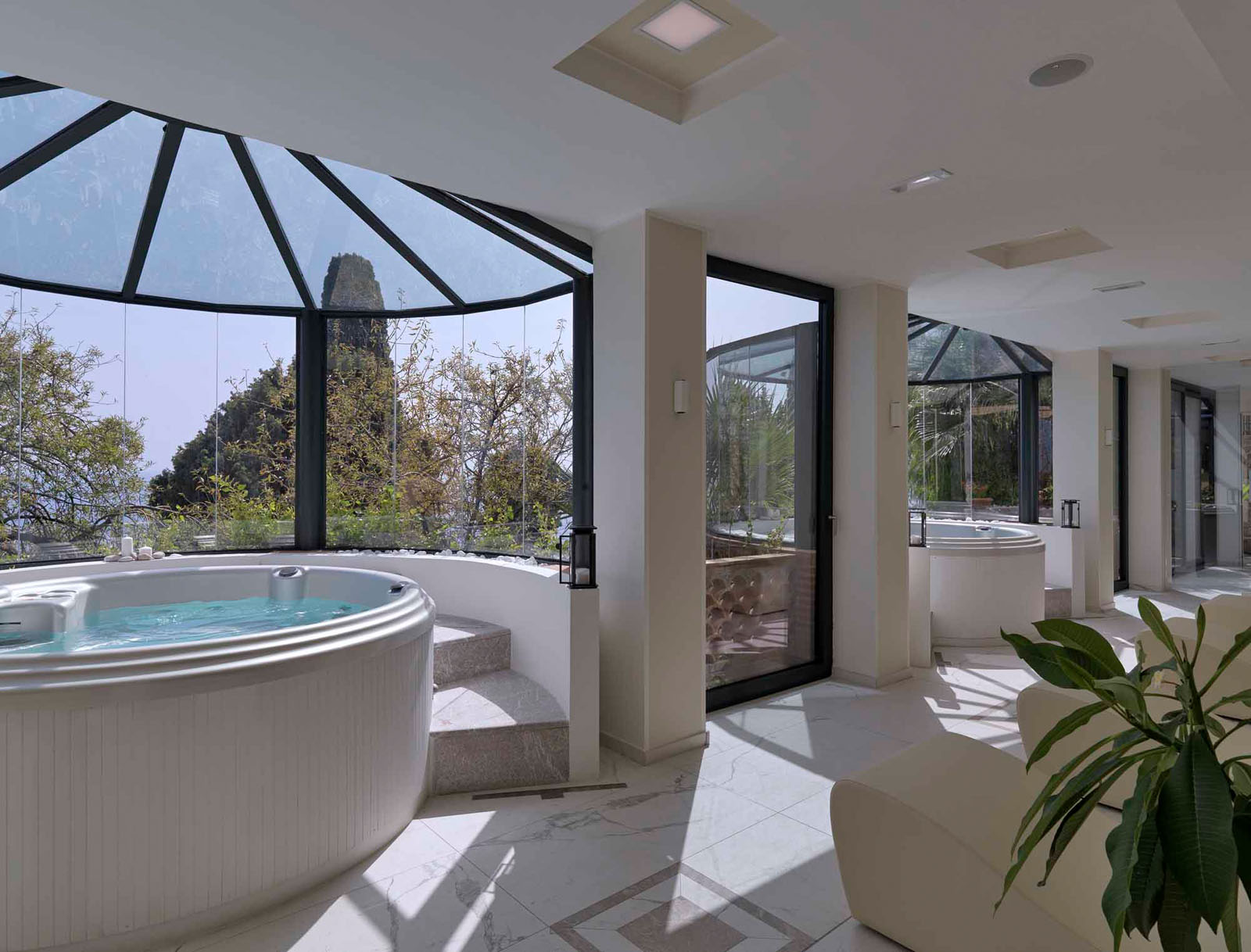 Hotel and catering, hospitality and leisureBoasting a breathtaking view of the Ionian Sea, the Grand Hotel San Pietro in Taormina is the perfect place for relaxation. The building is a recently restored early-20th century villa. In 2020, the spa was renovated by architect Teresa Cammara from Messina, who restyled the basement floor: a “foundation structure” with a breathtaking view, with amazing design potential.