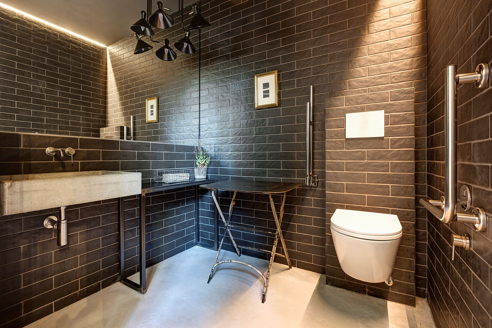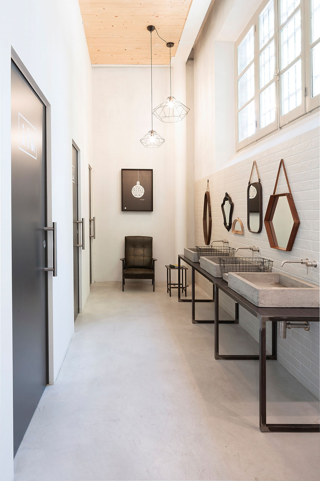 The Marazzi collections were chosen to decorate utility areas like the bathrooms and kitchens. One of the bathrooms was decorated with 7x28 cm Bricco brick wall effect porcelain stoneware in the colours Bianco and Carbone while the other was furnished with 25x76 cm Chalk ceramic tiles in the Smoke, Avio and Sand colours and the two 3D structures Fiber and Brick.