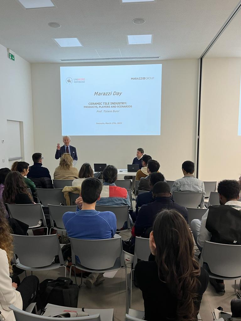 We hold Marazzi Day in partnership with Unimore, University of Modena and Reggio Emilia: this is a day in the company with students from the Master’s Degree in International Management, which incorporates a visit to the plant, discussion with our managers and a lecture on the ceramics sector.